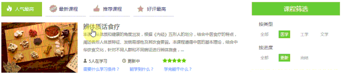 告诉您一个小秘密:首页推荐的课程,必属精品中的精品哦。通过首页推荐,可以为您极大的缩短筛选课程的时间!